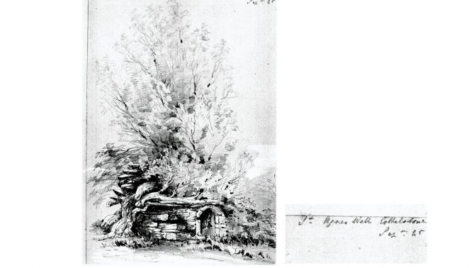 There are also wells that are reputed to be dangerous. These are obviously not associated with saints, and they tend not to be pixie or fairy wells, but rather, unsurprisingly, connected with witchcraft and/or the devil. For example near Bishops Lydeard church there was a well called The Devil’s Whispering Well, where curses could be whispered into the depths. Down a dark lane at Pardlestone in Kilve there was said to be a witches well, but it ceased to be dreaded after protective ash trees grew around it. Others are dangerous as they are uncanny – disappear in weird ways or even turn objects to stone!